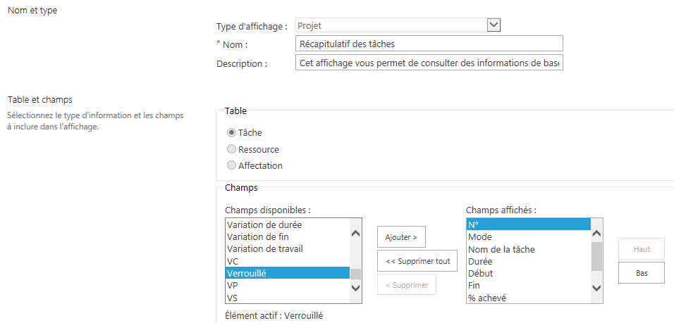 Vous avez maintenant la possibilité d’ajouter le champ « Verrouillé » directement dans un affichage de type « Projet »