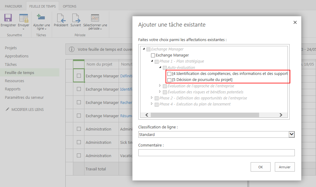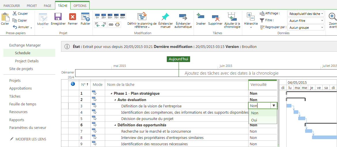 Avec Project Server 2013, la fonctionnalité a été légèrement revue.