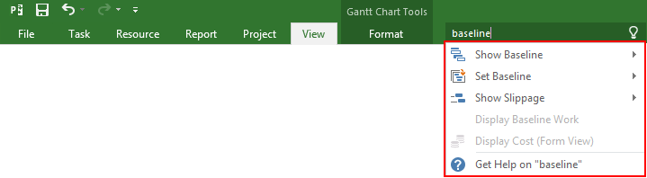 …Et Project me retourne tous les fonctionnalités liées au terme « baseline »